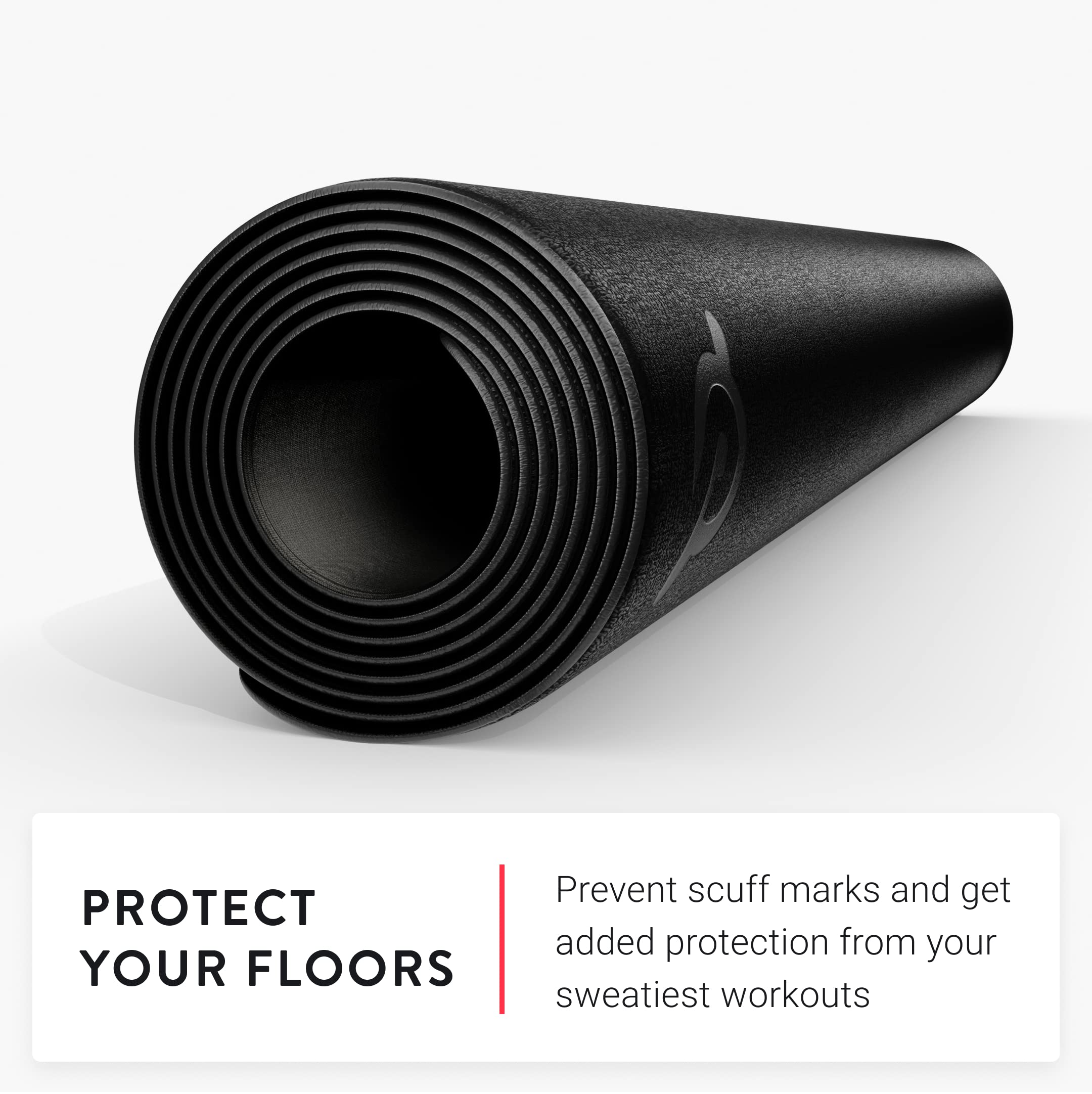 - PROTECTIVE FLOOR MAT – The Peloton Bike mat is made with high density material that prevents your Peloton Bike or Bike plus from leaving scuff marks and protects your floors during your sweatiest workouts.